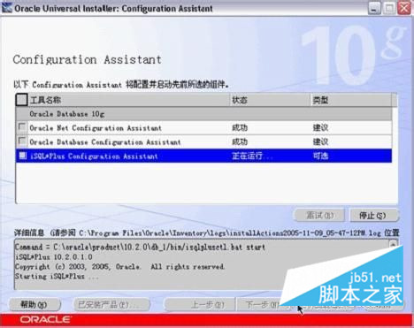 經過數分鐘的文件安裝過程之后,開始執行數據庫配置助手