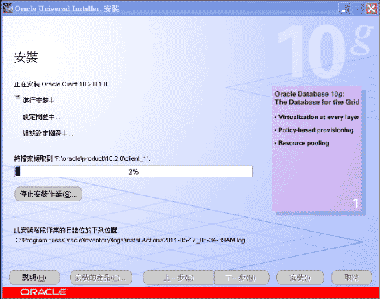 1. 將Oracle 10g client安裝包copy到本地才能安裝: