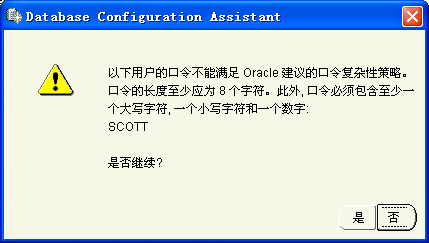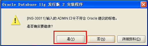 8. 若輸入的口令短小簡單,安裝時會提示如下。直接確認Y繼續安裝就是了。如圖: