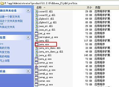 三.安裝后,進入測試下 可以通過開始,應用程序中的 "Oracle 11g" -> "應用程序開發" -> "Sql Developer 或Sql Plus" 連接。 注意第一次,使用SQL Developer時,會提示指定 java.exe的路徑,這里千萬別指定自己的java_home了(我就是開始不知道,指定一個JDK6,結束說不兼容。)可以使用Oracel安裝路徑下面的jdk路徑 具體是:如圖: