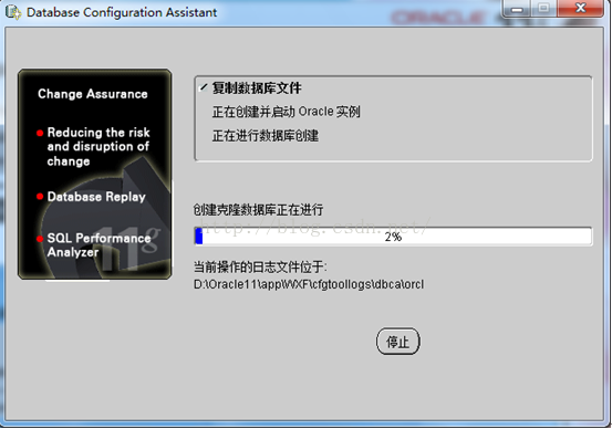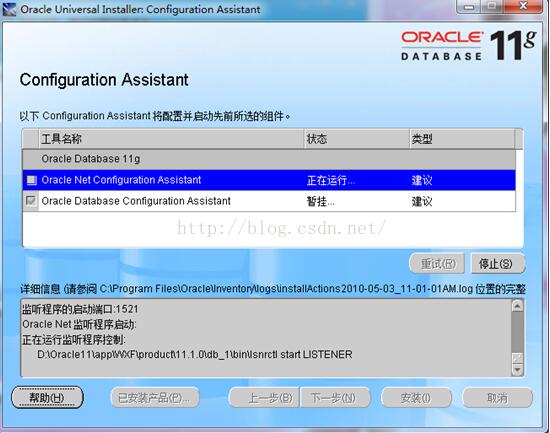 在等待Configuration Assistant配置完畢后,就開始正式安裝到我們的計算機硬盤上了,此時,就進入到Oracle數據庫的啟動和創建界面了,如下圖: