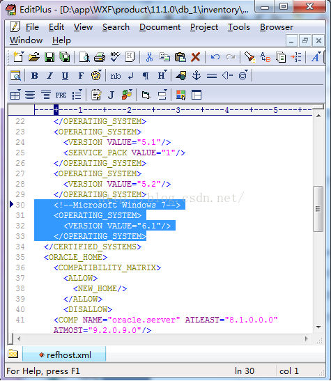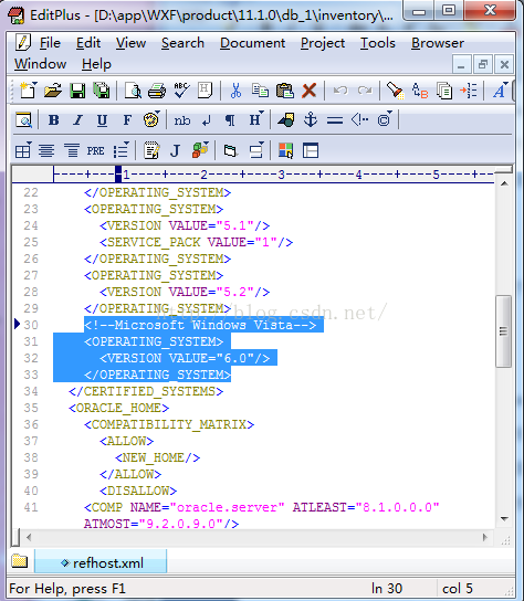 D:/ Oracle11/app/WXF/product/11.1.0/db_1/inventory/prereqs/db