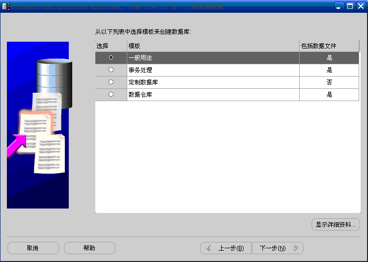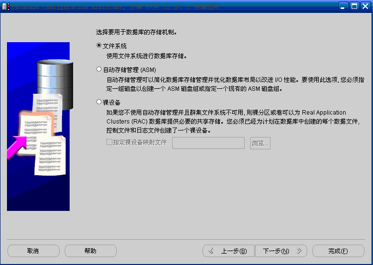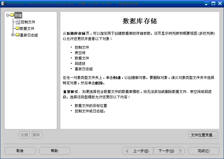 (12)單擊“下一步”按鈕,出現“數據庫存儲”窗口,如圖12: