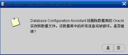 (6)最后自動出現數據庫刪除完畢窗口,單擊“是”按鈕,數據庫刪除完畢。