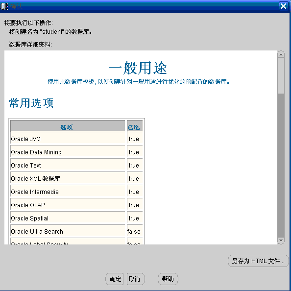 DBCA是一個操作簡單、靈活而強大的GUI環境。安裝Oracle數據庫軟件后,可以使用DBCA來創建和配置數據庫。DBCA能夠按步驟知道用戶完成創建新數據庫、更改現有數據庫的配置或刪除數據庫。通過DBCA選擇數據庫選項后,許多通常需要手動執行的數據庫創建任務會自動執行。使用DBCA可以從預定義的數據庫模板列表中進行選擇,也可以使用現有數據庫作為創建模板的樣本。