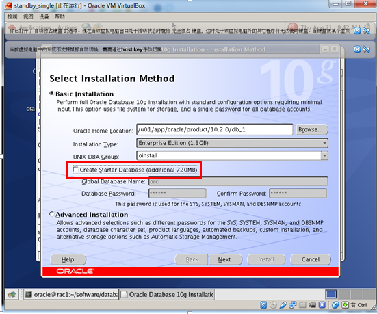 --取消勾選'createstarterdatabase',因為這里只想裝Oracle軟件,暫時不想建數據庫