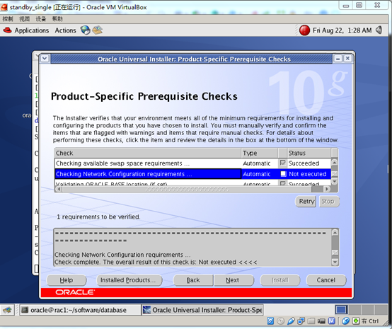 --checkingNetworkConfigurationrequirements這個status味'Notexecuted',可不管它。