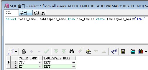說(shuō)明:本文使用2張表分別為學(xué)生表STU,課程表KC,兩張表分別存在TEST表空間中。