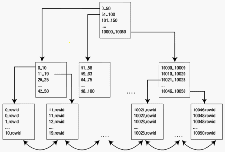 最后一層的葉子節是雙向鏈接,它們是被有序的鏈接起來,這樣才能快速鎖定一個數據范圍。