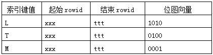 對兩個數據列A、B分別建立位圖索引:idx_t_bita和idx_t_bitb。兩個索引對應的存儲邏輯結構如下: