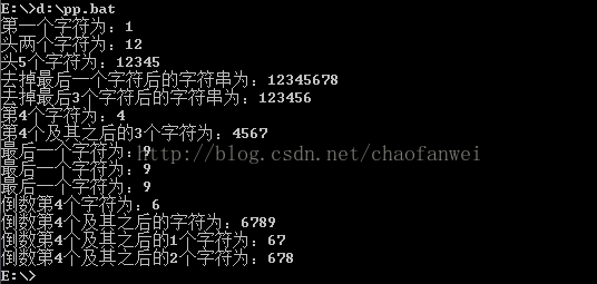 echo 倒數第4個及其之后的1個字符為:%str:~-4,2%