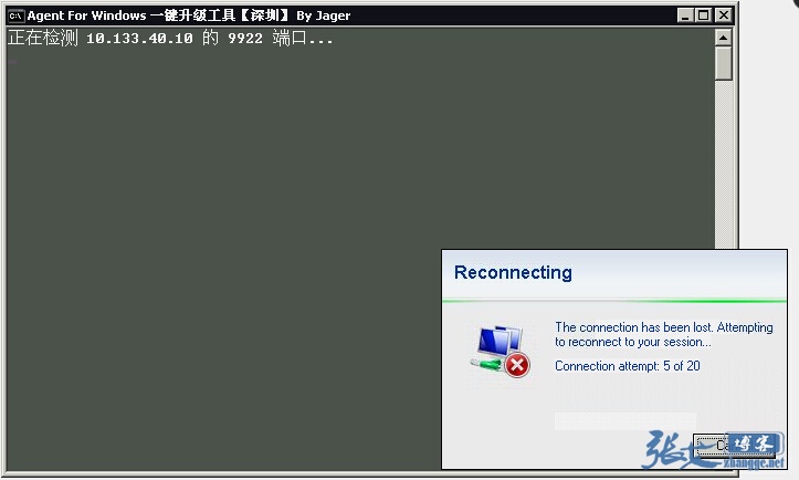 于是興沖沖的封裝成exe,給IDC(server2003系統)執行,結果第一臺就悲劇了!遠程桌面直接斷開了: