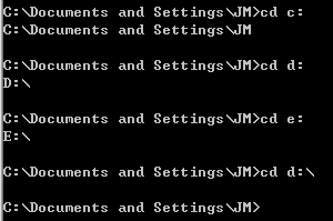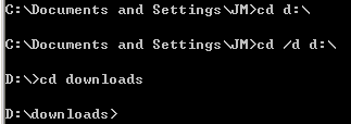 從當前目錄下跳轉到不同分區路徑d:/的時候,cd d:/沒有成功,當前目錄沒有發生改變;當添加了一個參數 /d 之后,命令成功地執行了。原來,要跳轉到不同分區的時候,需要添加強制跳轉參數 /d 。但是,如果進入的是當前目錄的子目錄,則可以不使用 /d 參數。這一點是很容易被大家忽略的,希望能引起足夠的重視。