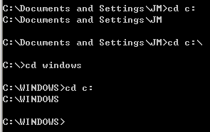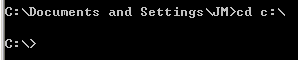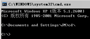 例如,我們打開命令行窗口的時候,一般是這樣操作的:在桌面左下角找到“開始”菜單,打開“運行”,輸入“cmd”,回車。這個時候,命令行窗口默認的當前目錄位于當前用戶所在的路徑下,比如:C:/Documents and Settings/JM,如下圖所示。