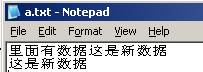 將字符串寫入文件中,如果文件中已經(jīng)有數(shù)據(jù),就將該字符串追加到文件的末尾。如圖所示: