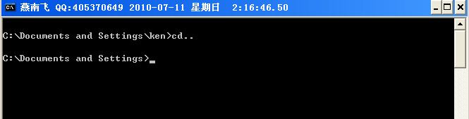 例2、如果想返回到上一層目錄,在當前命令提示符下輸入cd..如下圖: