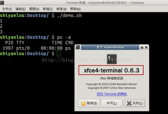 點(diǎn)擊幫助->關(guān)于,得到名稱是xfce4-terminal
