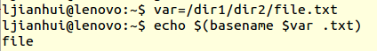 2)從上面命令的用法中可以看到,后綴(SUFFIX)是一個可選項。所以,若只想提取出文件名file,而不帶有后綴,還可以在變量的后面加上后綴名,例子如下: