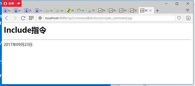 <%@ page language="java" import="java.util.*" contentType="text/html; charset=utf-8"%><%@ page import="java.text.*" %><% Date d = new Date(); SimpleDateFormat sdf = new SimpleDateFormat("yyyy年MM月dd日"); String s = sdf.format(d); out.println(s);%>2、include_command.jsp