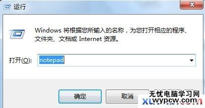 3.在運行窗口中輸入:notepad