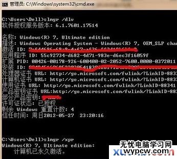 3.查看詳細激活信息、是否激活,則可輸入:slmgr /dlv /xpr回車。