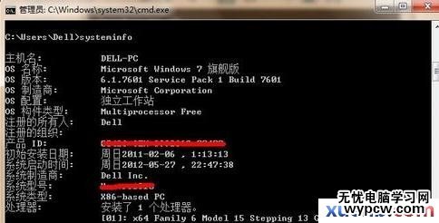 4.如果要看查系統的詳細版本,初始安裝時間,硬件信息,輸入systeminfo回車