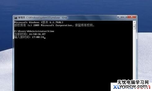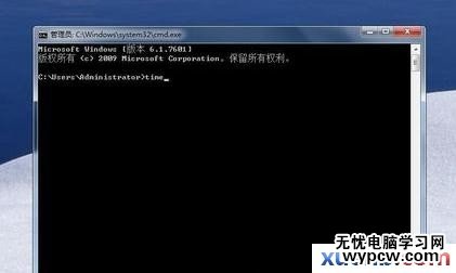 3.輸入“time”命令,按回車鍵,于是出現了編輯時間的狀態。