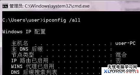 我們輸入查看本機ip地址命令 ipconfig /all 顯示的就是本機的詳細信息