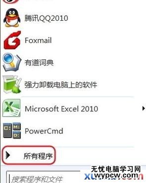 1從Win 7的桌面上點擊“開始”,然后再點擊“所有程序”。