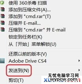 1在上面圖2中的“附件”的“命令提示符”圖標上點擊右鍵,在出現的菜單中選擇“發送到(N)”。