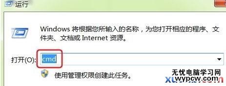1打開Win 7中的“運行”對話框,在其中輸入“cmd”,然后回車。
