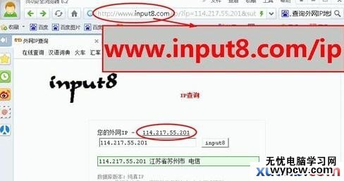 如輸入如圖網(wǎng)址,查詢外網(wǎng)IP;