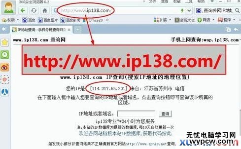如輸入如圖網(wǎng)址,查詢公網(wǎng)IP地址;