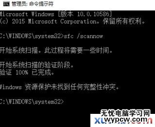 如果系統正常,會提示未找到完整性沖突。如果在掃描中發現了異常,該命令會自動調用完成修復。
