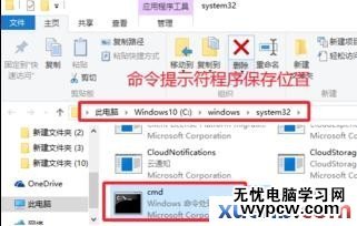 最后我們對命令提示符程序的存放位置最好最下了解,位置在C:/windows/system32文件夾中,其實電腦的很多管理工具都在這里面可以查看到。
