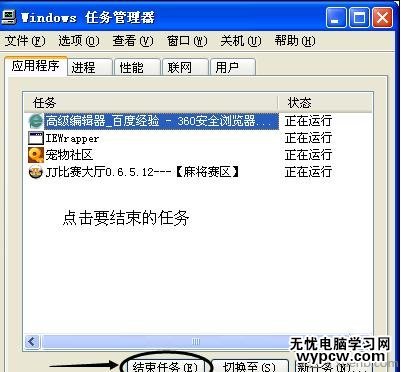 點(diǎn)擊要結(jié)束的任務(wù),點(diǎn)“結(jié)束任務(wù)”。