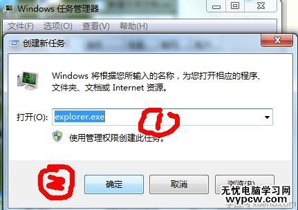 在彈出的對話框中輸如explorer.exe,確定。消失的屏幕就出現了,卡死的現象也解決了。