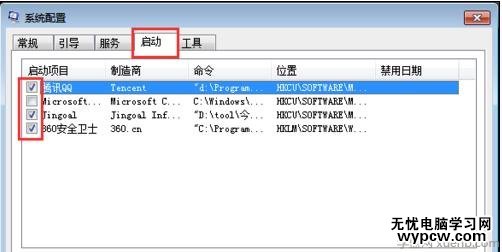 在系統(tǒng)配置對(duì)話框選擇”啟動(dòng)“菜單,把一些不需要啟動(dòng)項(xiàng)的打鉤去掉,點(diǎn)擊”確認(rèn)“按鈕即可。如圖: