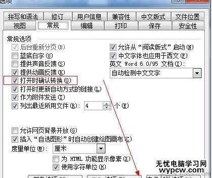 在彈出的對話康中,我們找到“常規”選項卡, 找到“打開時確認轉換”復選框,然后勾選上該選項并確定。