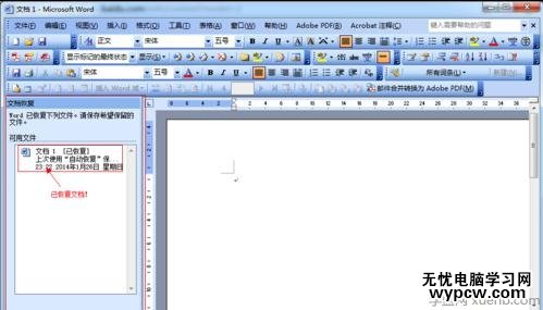 最后重新打開Word,我們可以在左側看到文檔恢復對話框,點擊即可查看了。