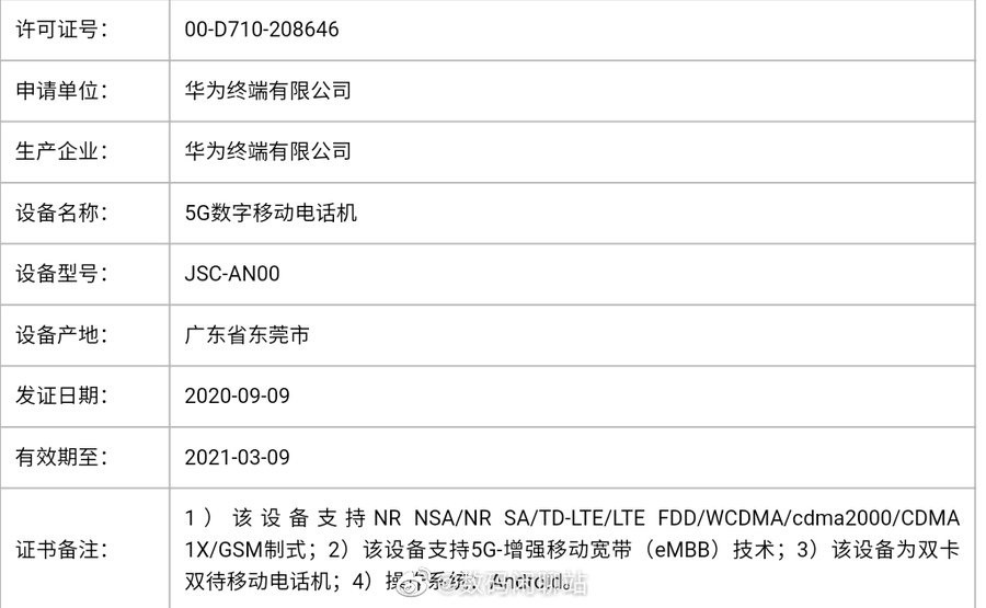 華為Nova8入網(wǎng):支持雙模5G