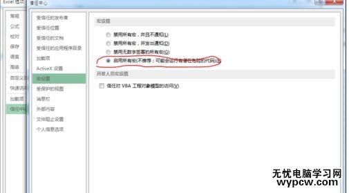 加載宏步驟5:選擇”宏設置“------啟用所有宏”。