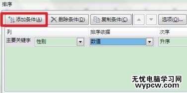 排序步驟5:然后通過【添加條件】來增加次要關(guān)鍵詞