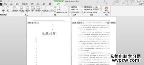 步驟四:取消選擇“鏈接到前一條頁眉”之后,可以看到頁腳右邊已經沒有“與上一節(jié)相同”字樣,這樣第二節(jié)的頁腳就是單獨的了
