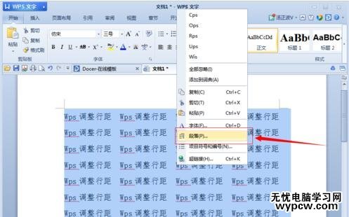 2在選中的文字區域點擊鼠標右鍵,在彈出的菜單中選擇【段落】;
