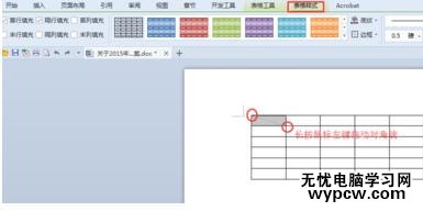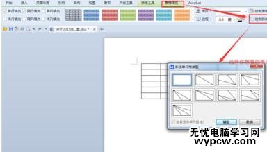 5.另外,有些表格需要把單元格用斜線分成三角形的單元格,怎么實現呢?有兩種方法:方法一,選中需要畫斜線的單元格,點擊表格樣式,選擇繪制表格,在該單元格用鼠標拖動,或者選擇繪制斜線表頭,點擊你想要的表頭,如圖: