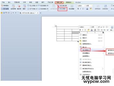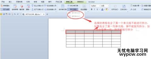 3.然后,我們來試試拆分表格,注意,拆分表格和拆分單元格是兩個概念。先將拆分表格,如果你想要把表格拆開,也是先選中你要從哪里進行拆,選中之后單擊鼠標右鍵,選擇拆分表格,或者在表格工具里選擇拆分表格即可。這里你要知道如果你選中的表格包含了表格的第一個單元格,是不能進行拆分的,若你選中的表格在第一行,擇不能按行拆分,如果在第一列,則不能按列拆分,如圖: