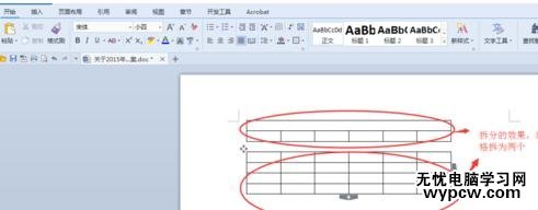 4.如果你要拆分單元格,先選中要拆分的單元格,然后點擊表格工具里的拆分單元格,或者單擊鼠標右鍵,選擇拆分單元格,接著輸入你想要拆分成幾行幾列,點擊確定,拆分單元格即完成。