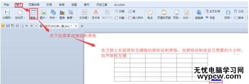 1.既然是講如何在WPS文檔中合并和拆分表格,首先,我們就要知道如何在文檔中建立表格。打開wps文檔,點擊插入,再點擊表格,在彈出的界面移動鼠標來確定插入的表格大小,然后單擊鼠標右鍵,表格即生成,或者直接選擇插入表格,手動填寫需要的列數和行數,也可以選擇繪制表格,直接在文檔中拖動鼠標來建立自己想要的大小的表格,如圖: