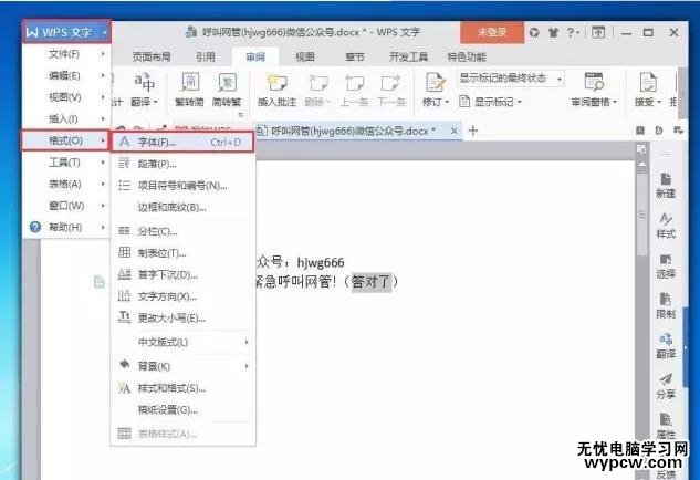 2.點擊WPS文檔中,文字下拉菜單→格式→字體。